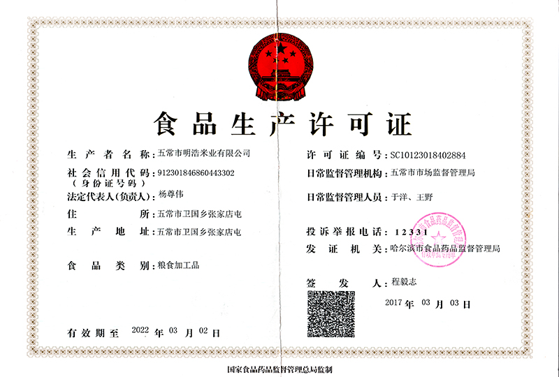 明浩米業(yè) 公司簡介 企業(yè)文化 領(lǐng)導致辭 資質(zhì)榮譽 食品生產(chǎn)許可證 食品經(jīng)營許可證 證明商標準用證 地理標志保護專用標志 共4條記錄 / 共1頁