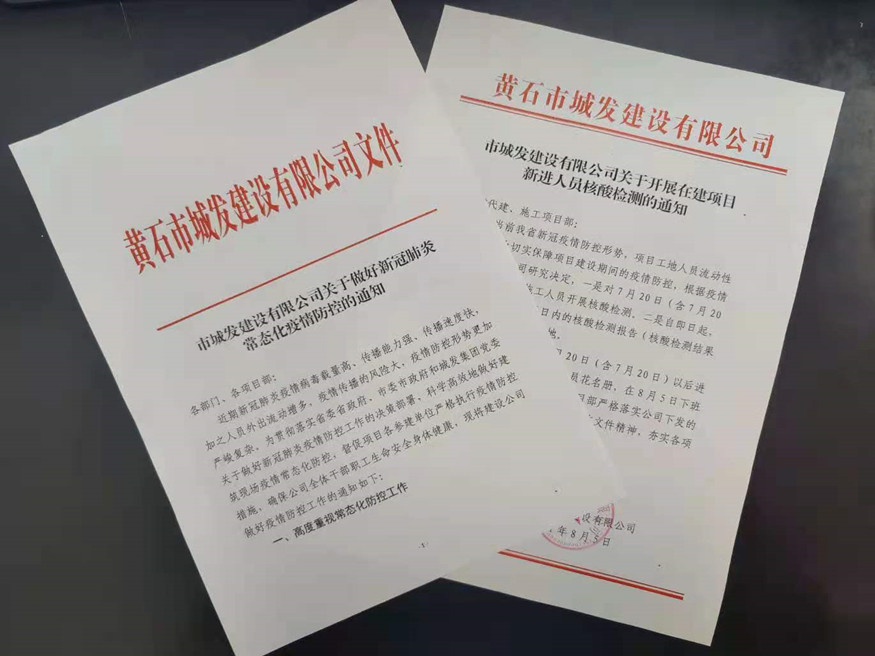 鑒于項目工地人員密集,流動性大的特點,8月5日,公司印發(fā)了《市城發(fā)建設(shè)有限公司關(guān)于開展在建項目新進人員核酸檢測的通知》,為切實擔負起防疫抗疫責任,有效降低人員流動引發(fā)的疫情傳播風險,要求7月20日以來新進項目員工須持3日內(nèi)合格核酸報告進入項目工地。